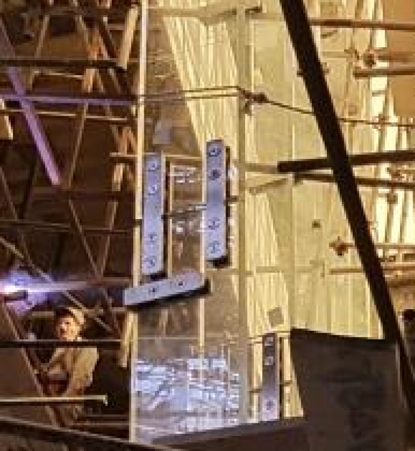 ADDITIONAL PART FOR GLASS BEAM AND COLUMN: A special machine and connection element allowing to produce one part 18m GlassFin beam or column.